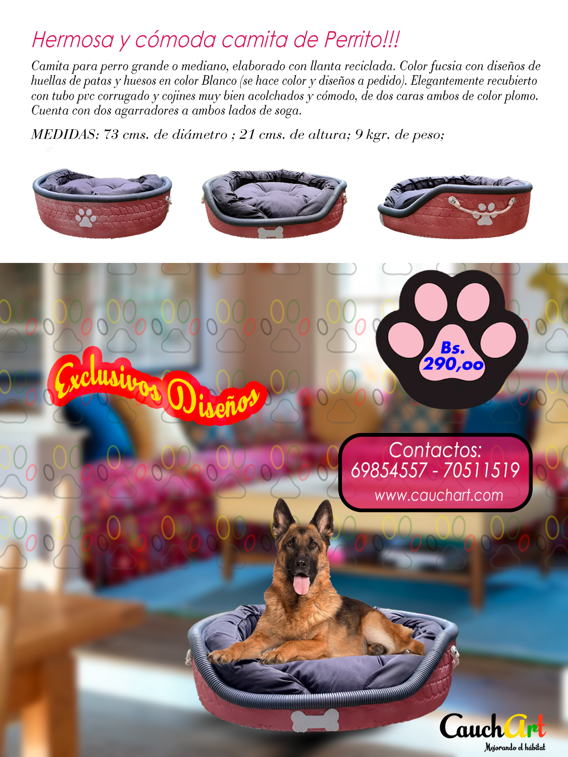 Camita para perro, muy cómoda elaborada con llanta reciclada.